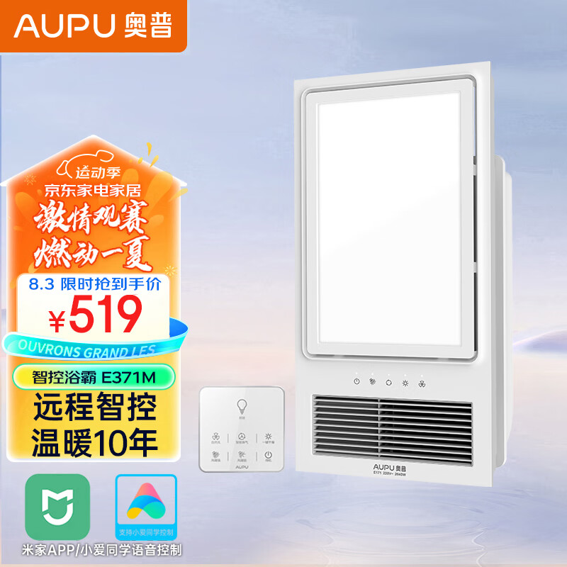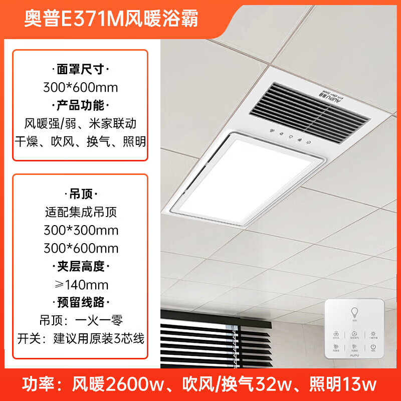 奥普(AUPU)浴霸E371M集成吊顶大功率风暖浴霸 强弱风暖 薄箱体 米家联动价格:749.00元!