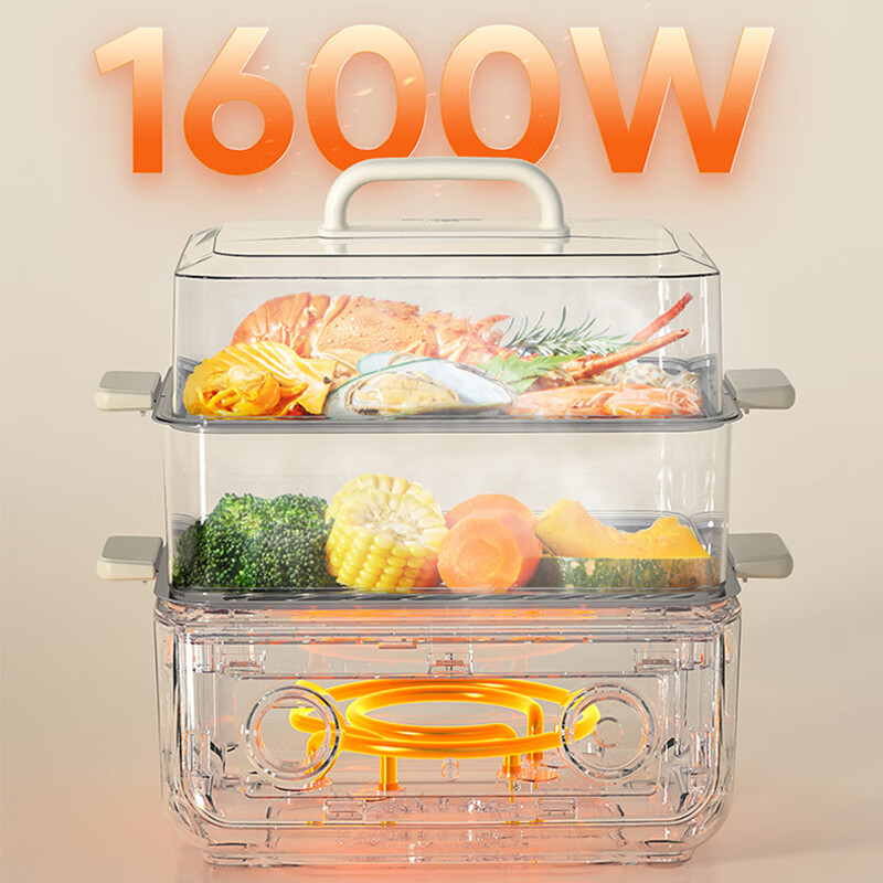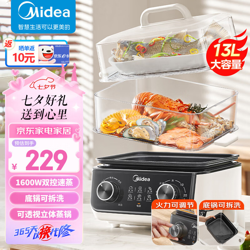 美的(Midea)穿透蒸电蒸锅 电煮锅 电火锅 多功能锅家用电蒸锅 双控速蒸13L大容量蒸煮多用途锅MZ-ZGE272352C价格:229.00元!