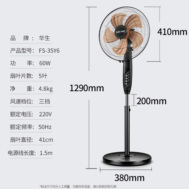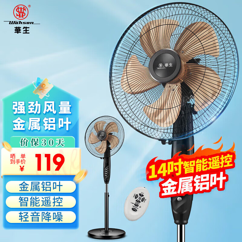 华生(Wahson)电风扇/金属铝叶风扇/遥控落地扇/家用办公低噪省电大风量落地扇立式摇头风扇 FS-35Y6价格:129.90元!