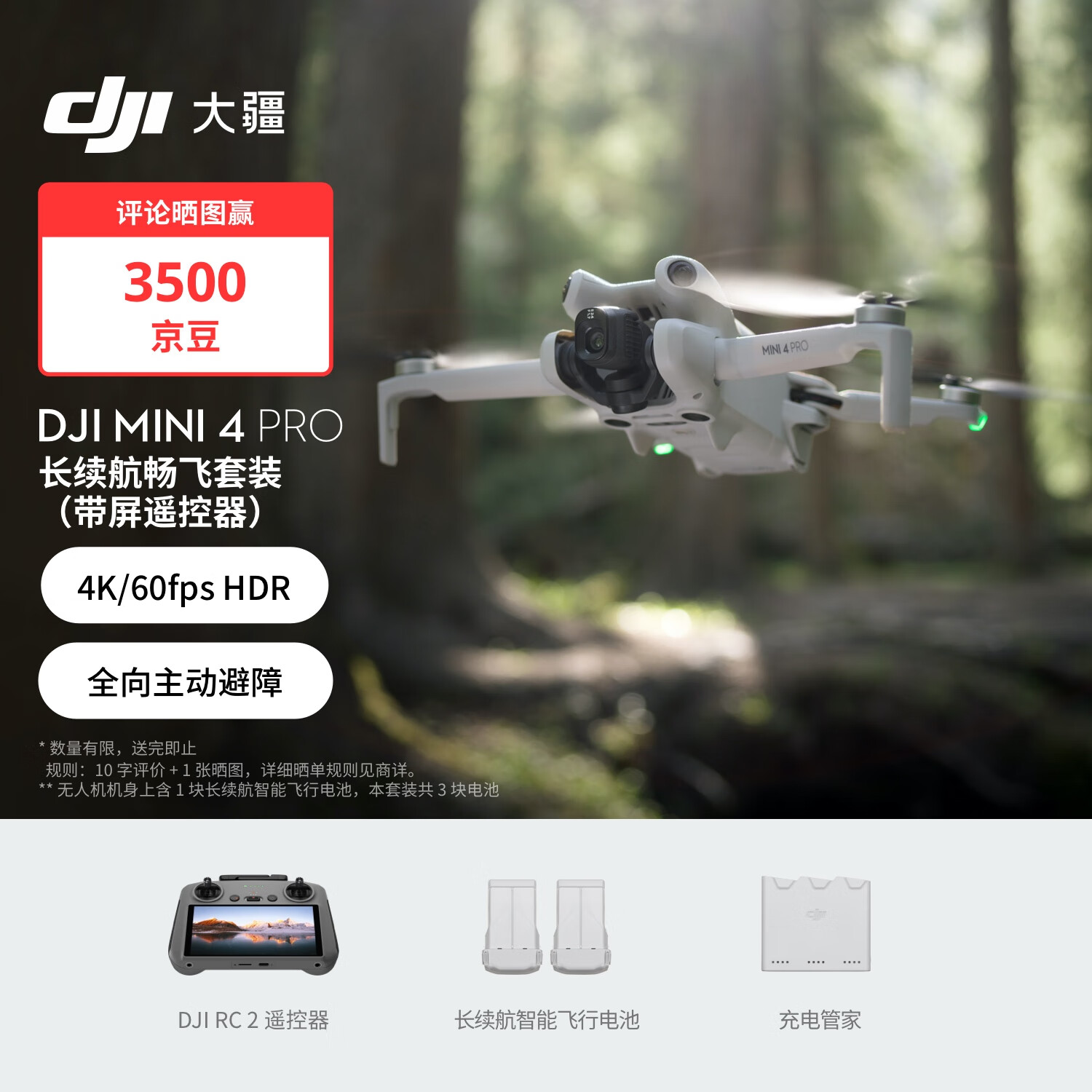 大疆 DJI Mini 4 Pro 长续航畅飞套装(带屏遥控器版)全能迷你航拍机 入门级无人机专业航拍无损竖拍价格:7388.00元!