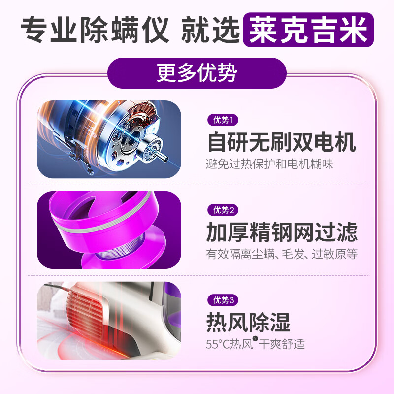 莱克吉米除螨吸尘神器B506智能款家用床上小型手持超声波紫外线杀菌去螨虫大吸力除螨仪一体机【鲸吸】价格:649.00元!