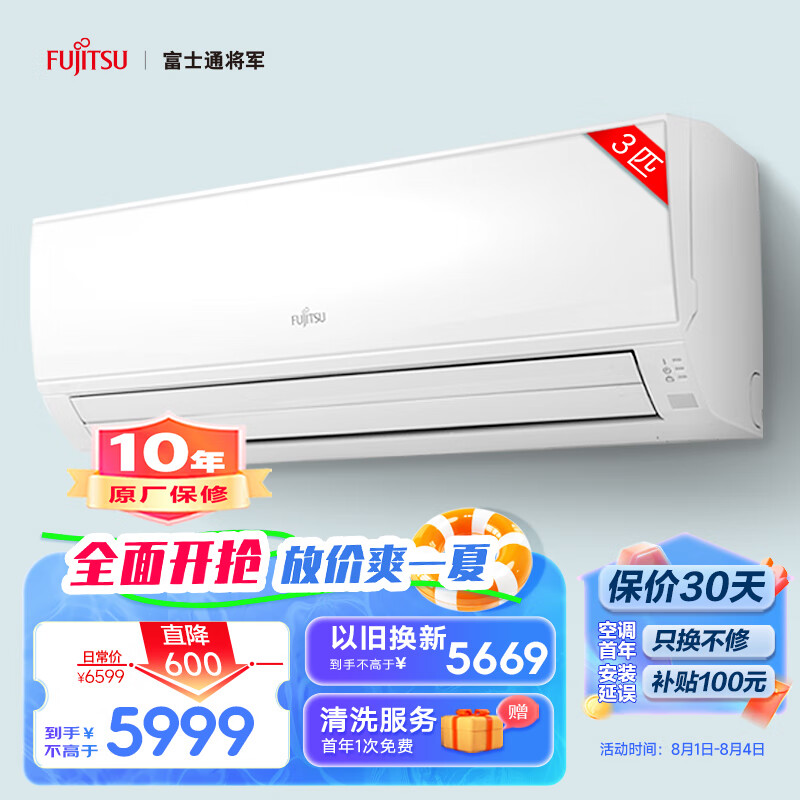 富士通 26-38㎡适用 新3级能效 3匹 客厅用变频挂机 以旧换新 大风量空调ASQG24KLCA (KFR-72GW/Bpkla)价格:5999.00元!