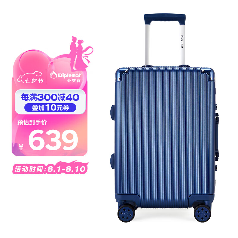 Diplomat外交官行李箱带护角铝框箱拉杆箱双TSA密码锁登机旅行箱TC-9182价格:729.00元!