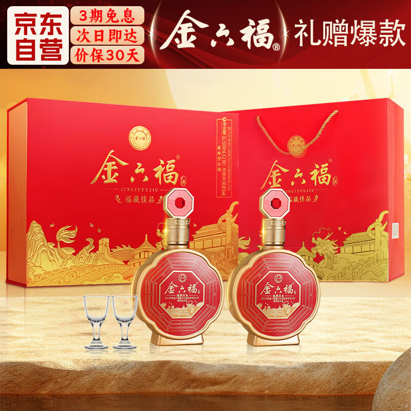 金六福 福藏佳品 50.8度 兼香型白酒礼盒 500ml*2瓶 喜酒红宴请中秋送礼价格:199.00元!