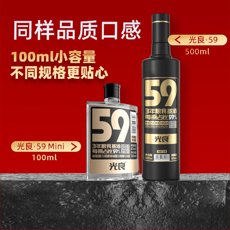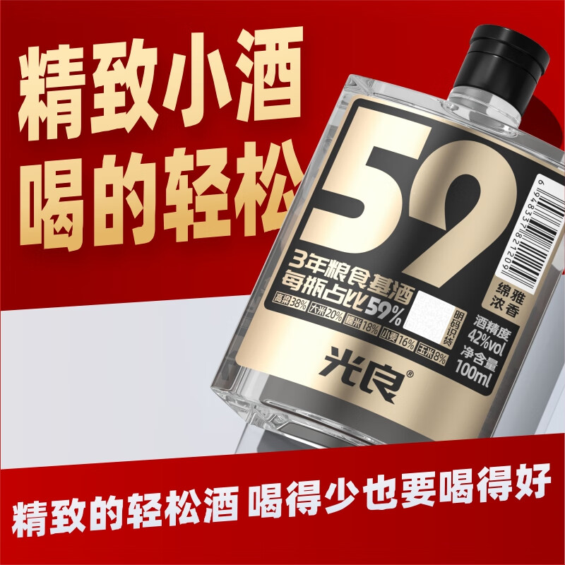 光良 数据瓶59mini 浓香型白酒 42度 100ml*24瓶 整箱装价格:888.00元!