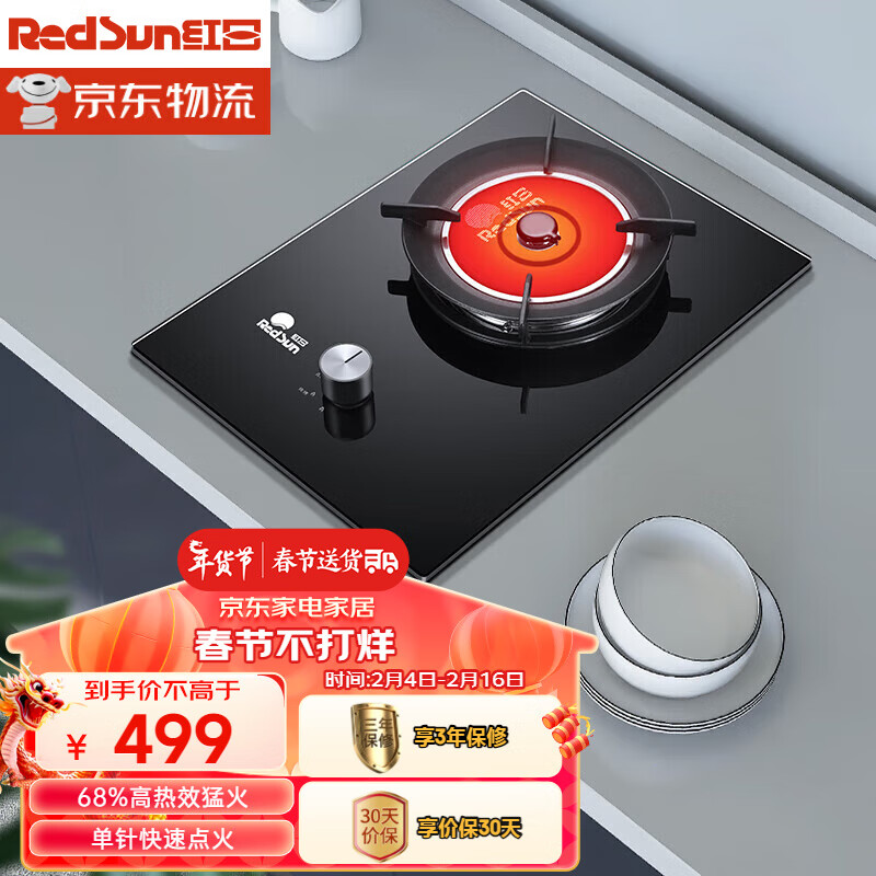 红日 RedSun 红外线 燃气灶 台嵌两用天然气单灶 一级能效 68%热效率 JZT-EM118B 天然气价格:499.00元!