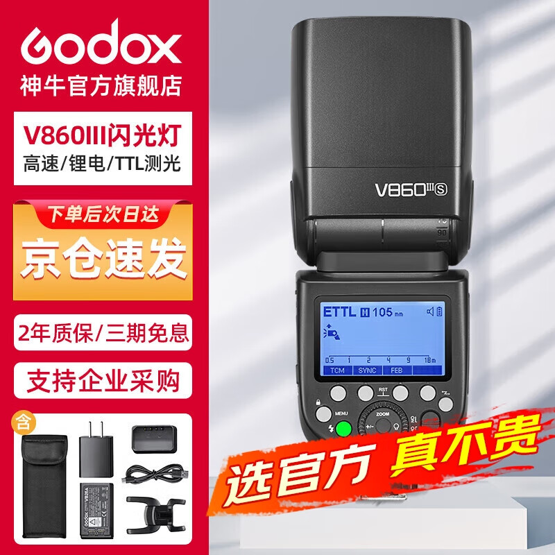 神牛V860III三代机顶闪光灯索尼单反微单热靴闪光灯单反机顶灯高速同步离机TTL自动测光锂电机顶灯价格:1088.00元!