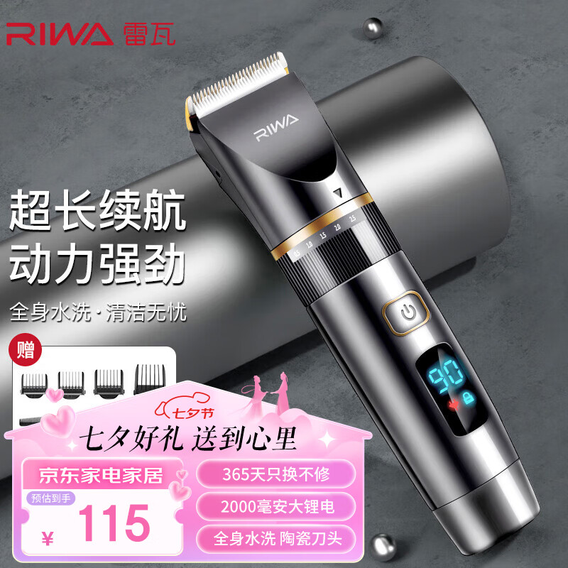 雷瓦(RIWA) 理发器电推子 全身水洗 专业成人儿童电动理发器 婴儿剃头电推子 大锂电理发推子RE-6501价格:115.00元!