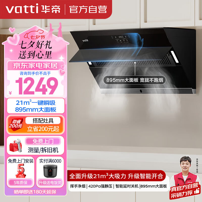 华帝(VATTI) 官方抽油烟机侧吸式家用吸油烟机小尺寸自动开合 21风量瞬吸大吸力脱排油烟机 i11127S价格:1499.00元!