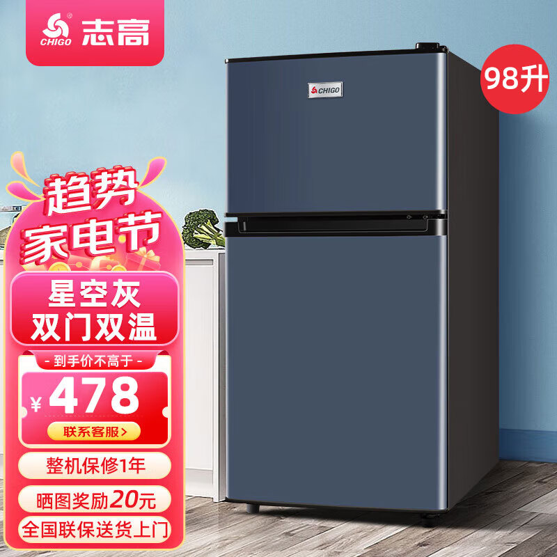 志高(CHIGO)98升小冰箱 双门宿舍租房小户型家用冷藏冷冻双开门 迷你电冰箱节能保鲜冰箱 BCD-98LM170A 星空灰价格:498.00元!