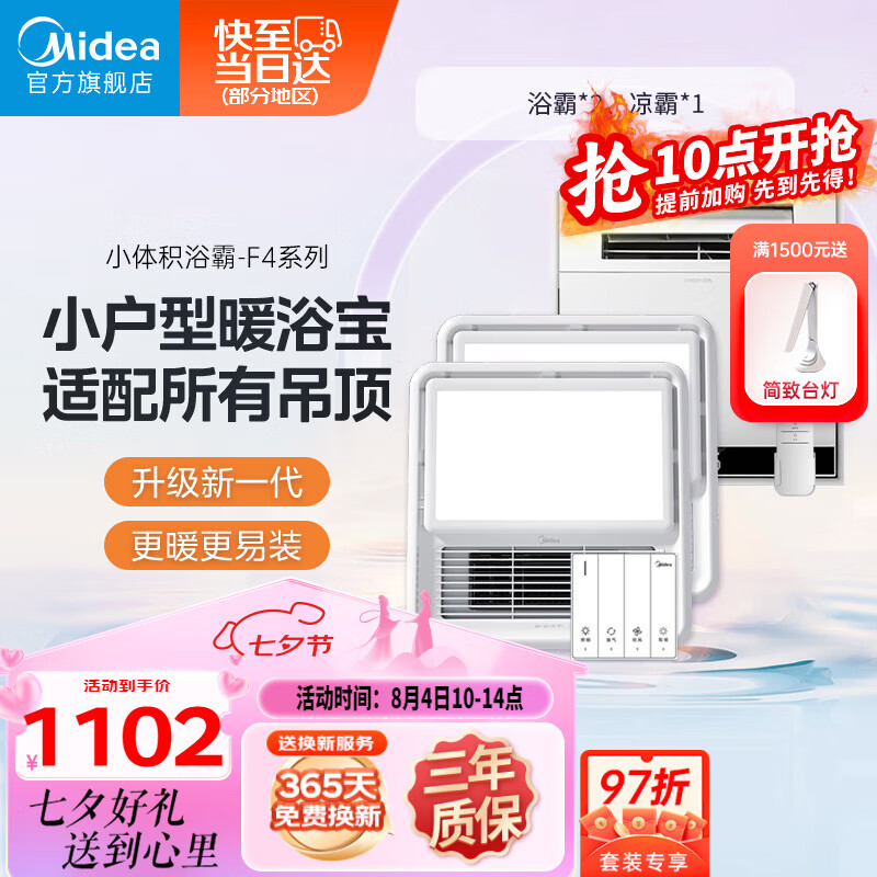 美的(Midea)风暖照明浴霸集成吊顶排气换气多功能正方形轻薄低噪小户型暖风机价格:1102.00元!