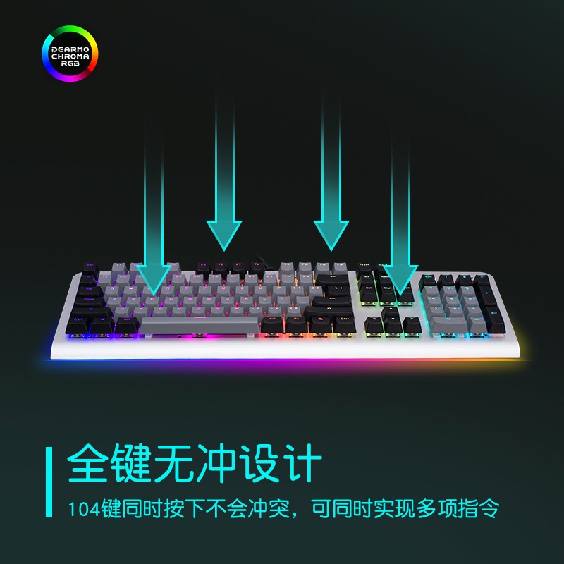 迪摩(DEARMO)F31机械键盘有线键盘游戏键盘104键RGB背光键盘吃鸡键盘电脑键盘 太空银 青轴价格:159.00元!