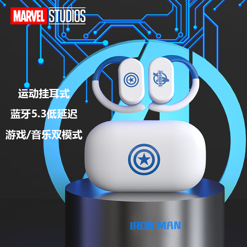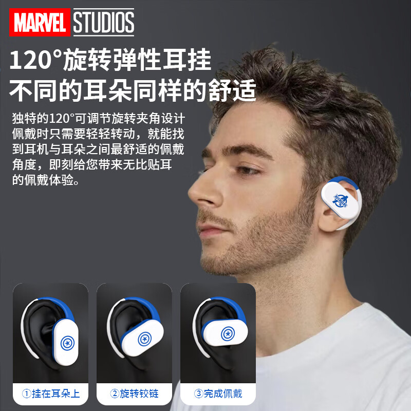 迪士尼漫威OWS开放式无线蓝牙耳机气传导挂耳式不入耳舒适户外男生礼物长续航通话降噪 MV08美队白价格:109.00元!