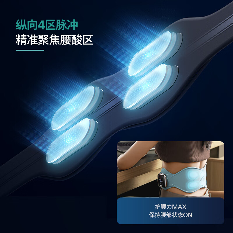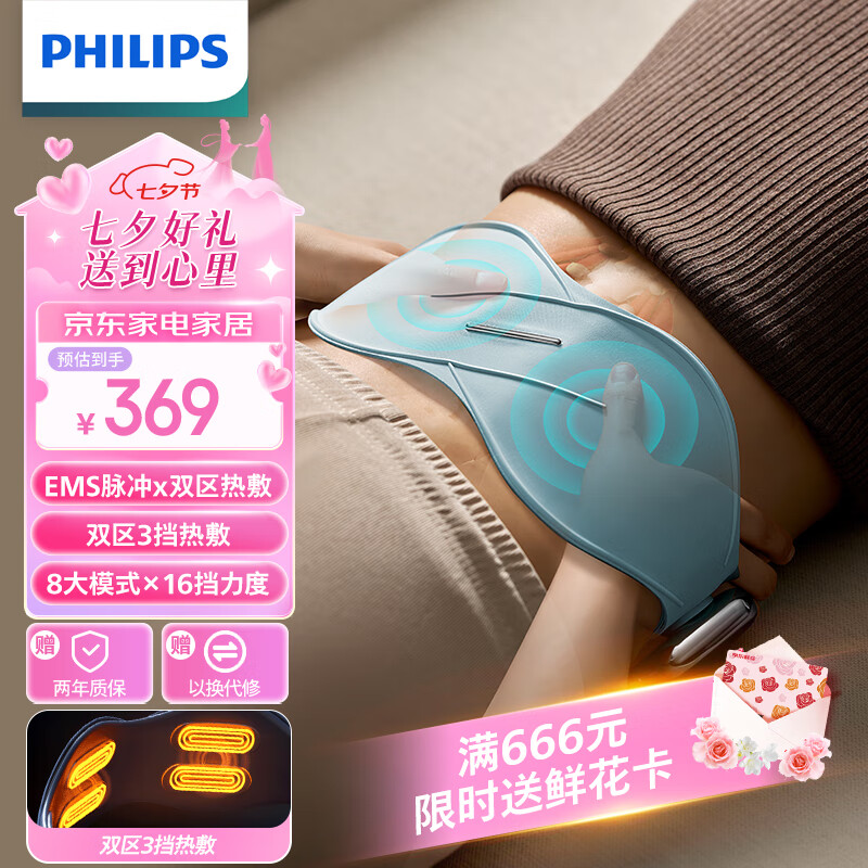 飞利浦(PHILIPS)腰部按摩仪热敷护腰带 EMS脉冲四区揉捏缓解酸累便捷腰部按摩器 情人节七夕送礼礼物5301B 浅蓝价格:409.00元!