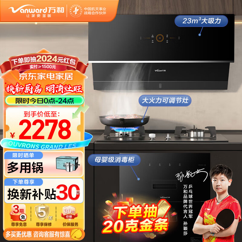 万和(Vanward)烟灶消三件套 侧吸式油烟机燃气灶具消毒柜厨房多件套装 WJ760+B7L51+ZTD100Q-D5(天然气)价格:2278.00元!