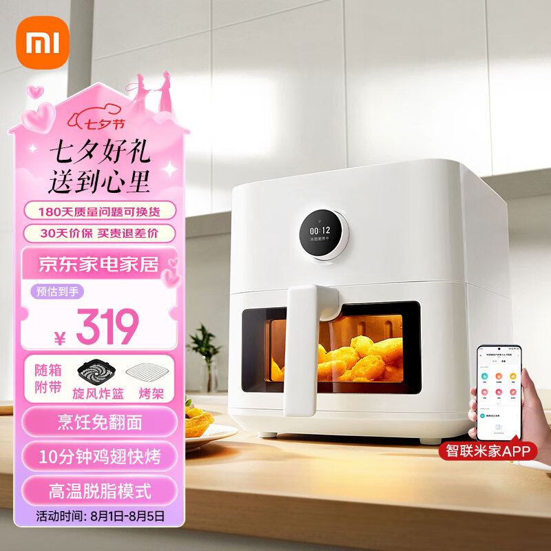 米家小米空气炸锅烤箱一体机电炸锅 可视化全自动免翻面 不粘涂层 烤红薯薯条 多功能智能 大容量5.5升价格:309.70元!