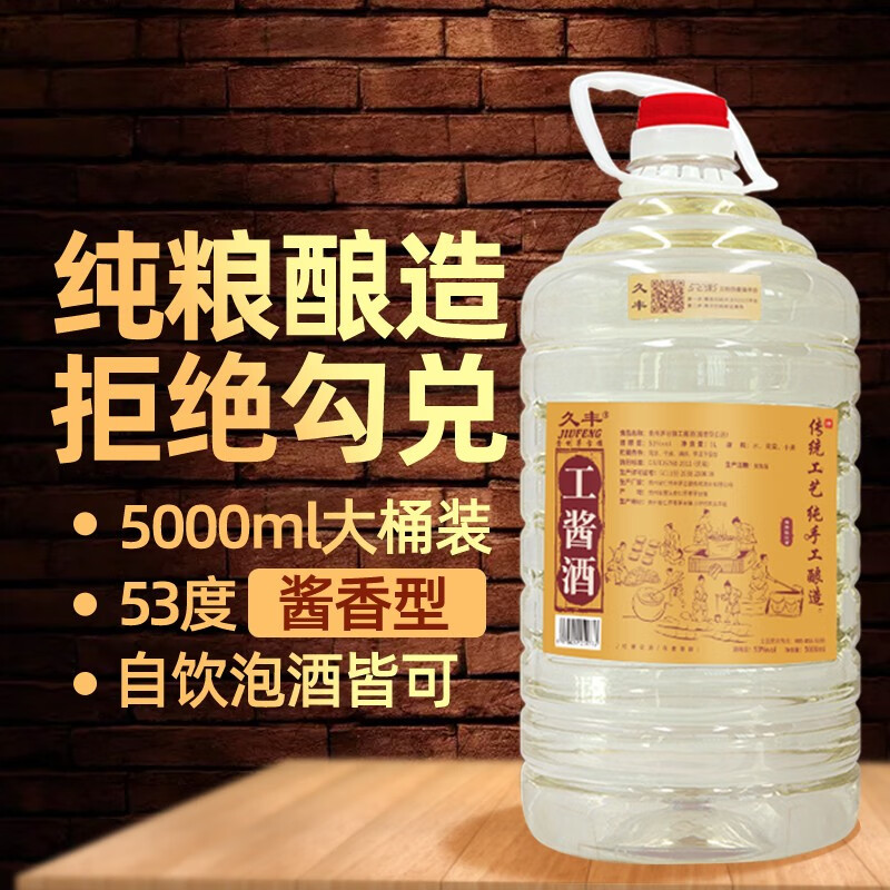 久丰工酱酒 酱香型白酒桶装 贵州茅台镇纯粮食高粱酒泡药酒高度白酒 53度 5L 1桶价格:279.00元!