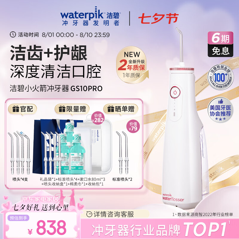 洁碧(Waterpik)冲牙器便携式电动洗牙器水牙线家用立式预防牙结石全身水洗【小火箭】玫瑰金 【七夕情人节礼物】价格:958.00元!