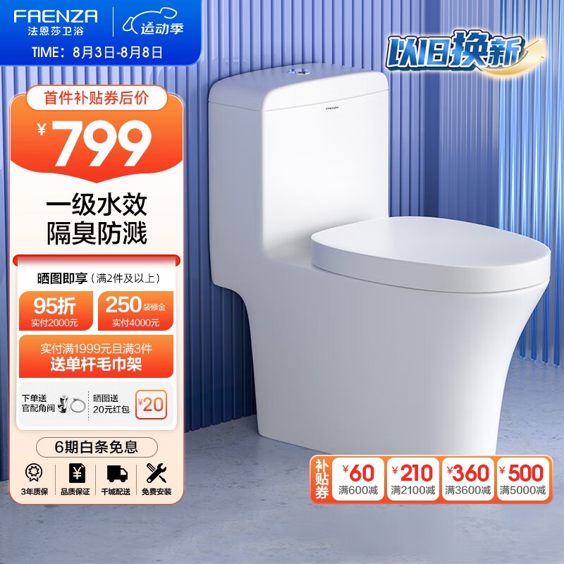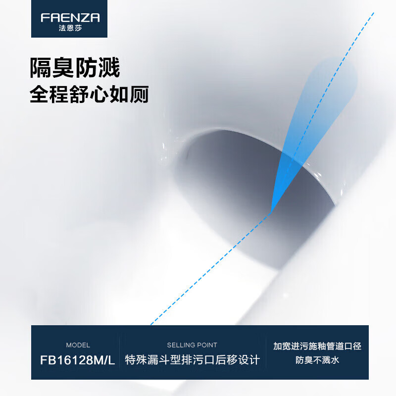 法恩莎(FAENZA)家用一体式抽水马桶喷射虹吸式节水坐便器FB16128L-400mm价格:979.00元!