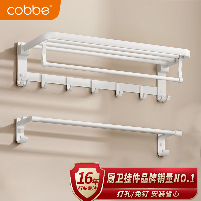 卡贝(cobbe)太空铝毛巾架浴室壁挂免打孔卫生间置物架洗手间浴巾架五金挂件价格:208.00元!