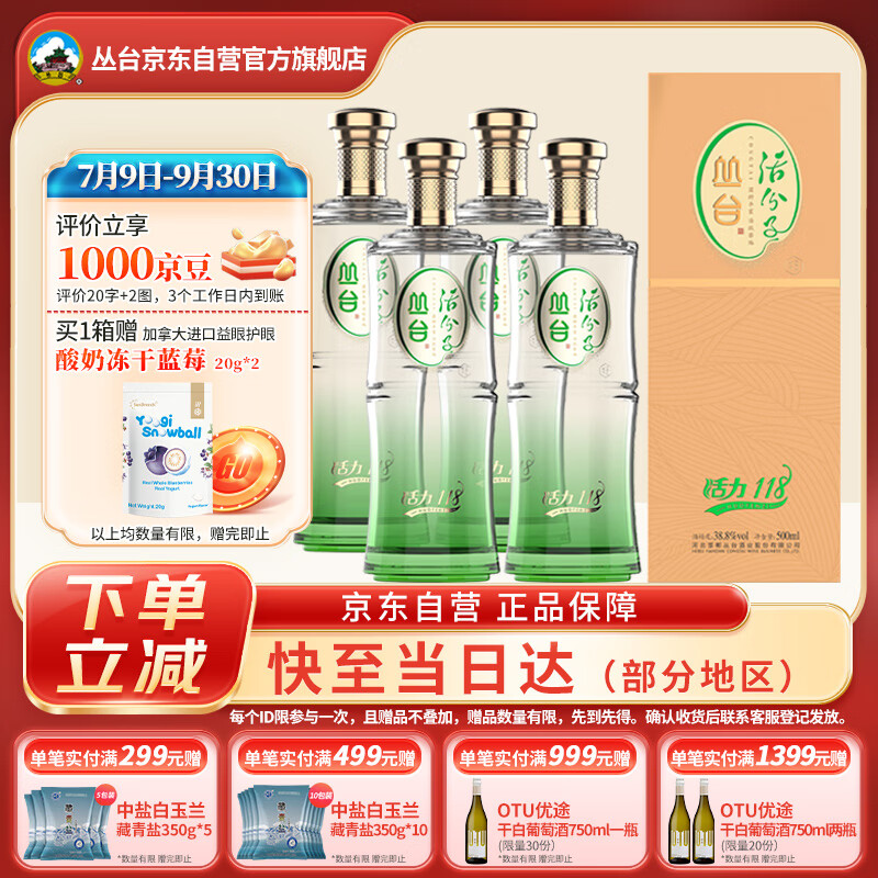 丛台酒 活分子(活力118) 浓香型白酒 38.8度 500ml *4 整箱装价格:280.00元!