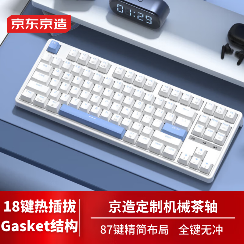 京东京造J87有线机械键盘 87键 gasket结构18键热插拔 背光茶轴 双侧RGB 海盐芝士 七夕礼物送男友价格:139.00元!