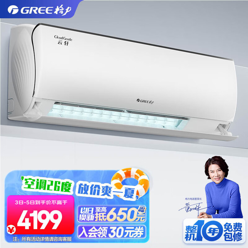 格力(GREE)空调 京东小家智能生态 1.5匹 云轩 新1级能效 变频 壁挂式卧室挂机 格力空调KFR-35GW/NhHc1BAj价格:4199.00元!