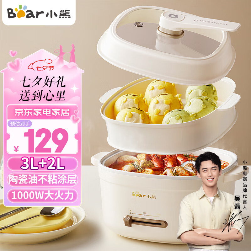 小熊(Bear)电煮锅 泡面火锅宿舍小电锅 多功能多用途电热锅 3L蒸煮一体蒸屉蒸笼DRG-E30U8价格:129.00元!