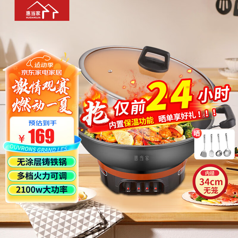 惠当家(Hui Dang Jia)电炒锅多功能电热锅电锅加厚电蒸锅电煮锅一体铸铁锅电火锅多用途锅Z08-34价格:151.00元!