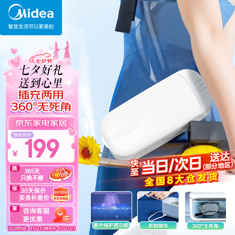 美的(Midea)超声波清洗机 超声波洗眼镜 首饰剃须刀手表假牙牙套神器 UV紫外线除菌 眼镜清洗机 MHJ45-02VW价格:199.00元!