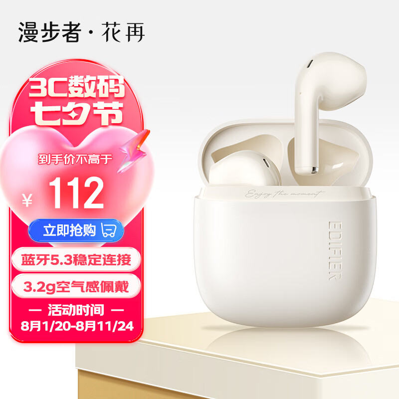 漫步者花再Zero Air 真无线蓝牙耳机 半入耳式耳机 无线耳机 蓝牙5.3耳机 适用苹果安卓华为小米 月白价格:119.00元!