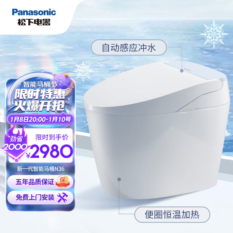 松下(Panasonic)即热式智能马桶N36 快速烘干自动除臭 柔光夜灯分体式 CHGN616BLC价格:2980.00元!