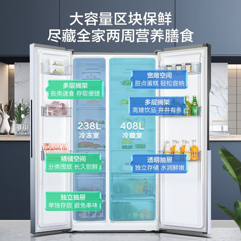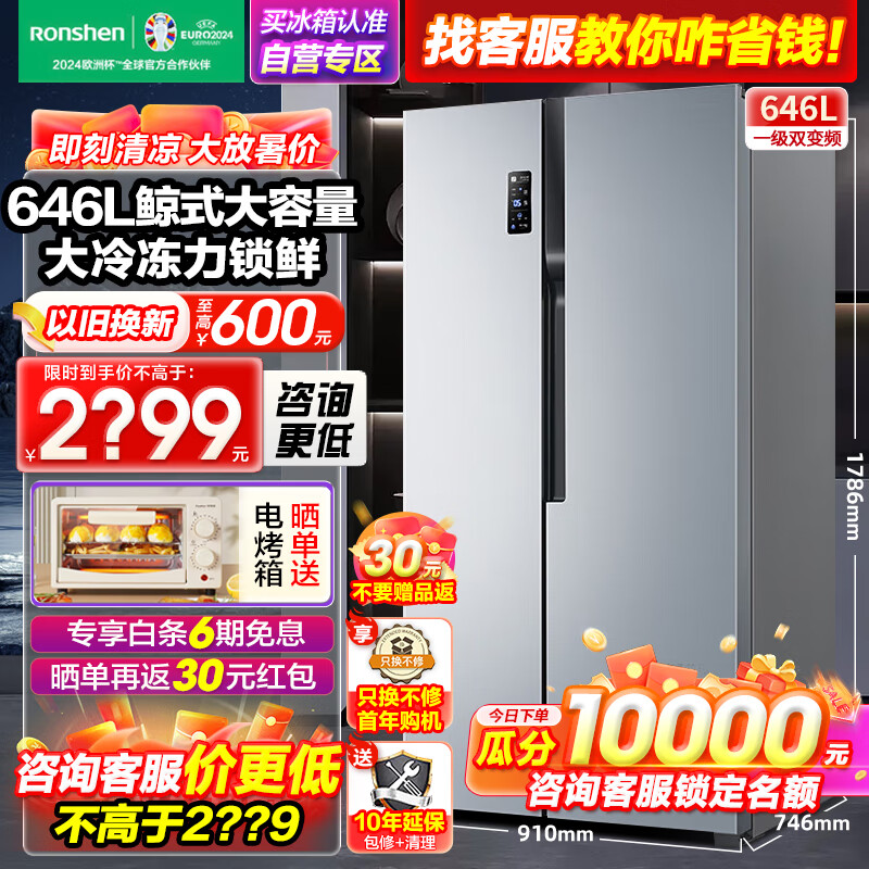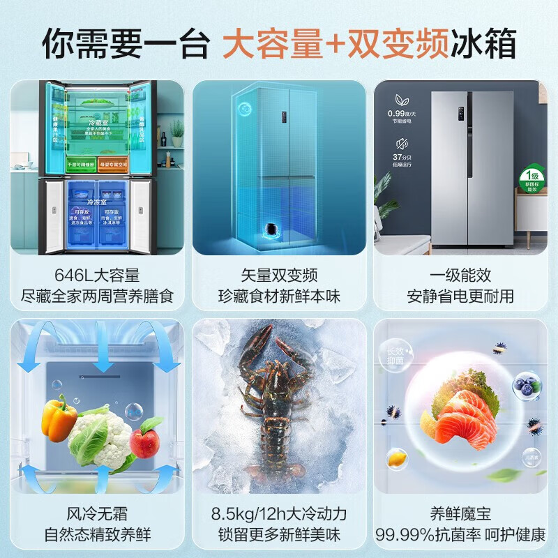 容声(Ronshen)646升对开门双开门二门一级能效风冷无霜型家用双变频超大容量可嵌入式超薄电冰箱BCD-646WD11HPA价格:2699.00元!