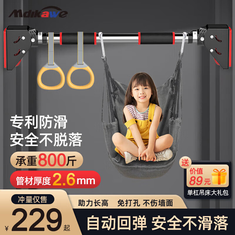 曼迪卡威(Mdikawe)单杠引体向上器成人家用儿童室内单杆门框免打孔健身器材秋千吊床价格:229.00元!