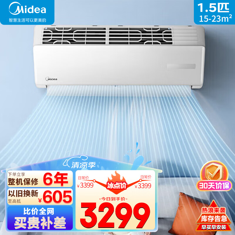 美的(Midea)空调1.5匹挂机 全直流变频冷暖空调 独立除湿 壁挂式 卧室书房空调挂机 KFR-35GW/G3-3价格:3299.00元!