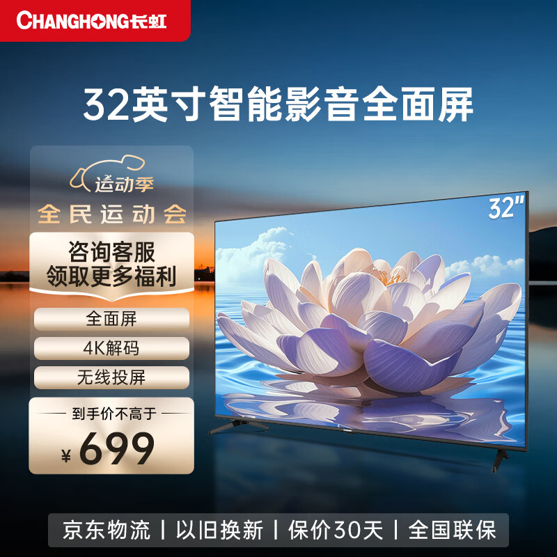 长虹电视32D4PF 32英寸智能网络屏教育电视 4K解码 蓝光高清 手机投屏 平板液晶电视机 32英寸价格:699.00元!