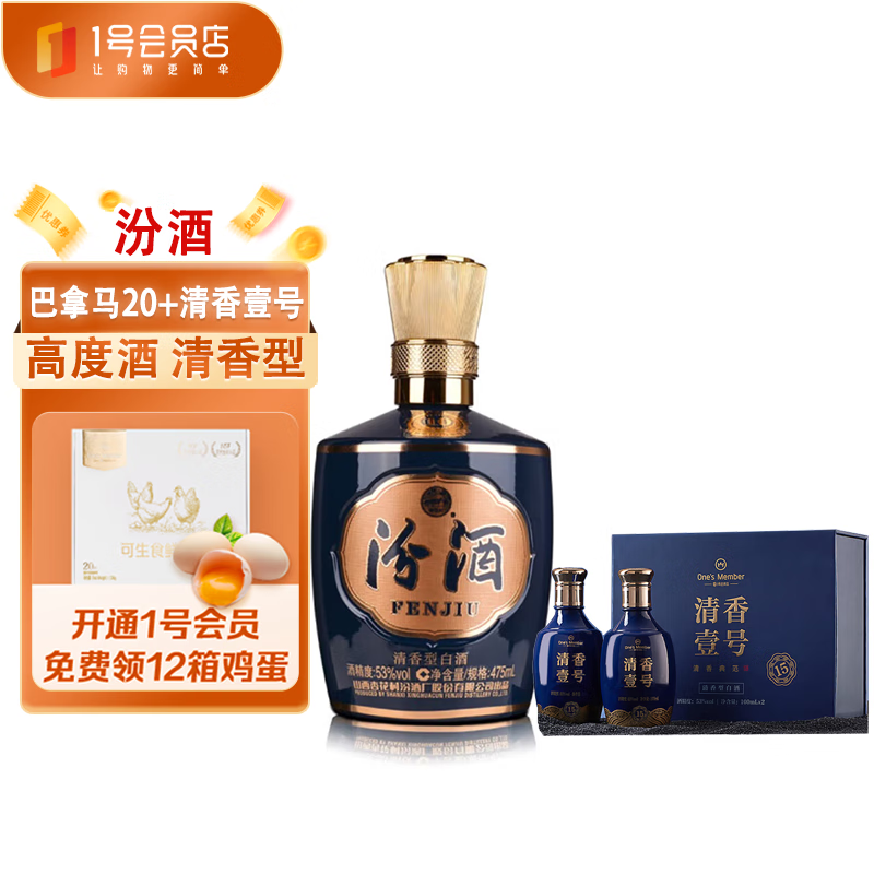 汾酒1915巴拿马10 清香型白酒53度475ml *6瓶整箱+清香壹号 1号会员店价格:1269.00元!