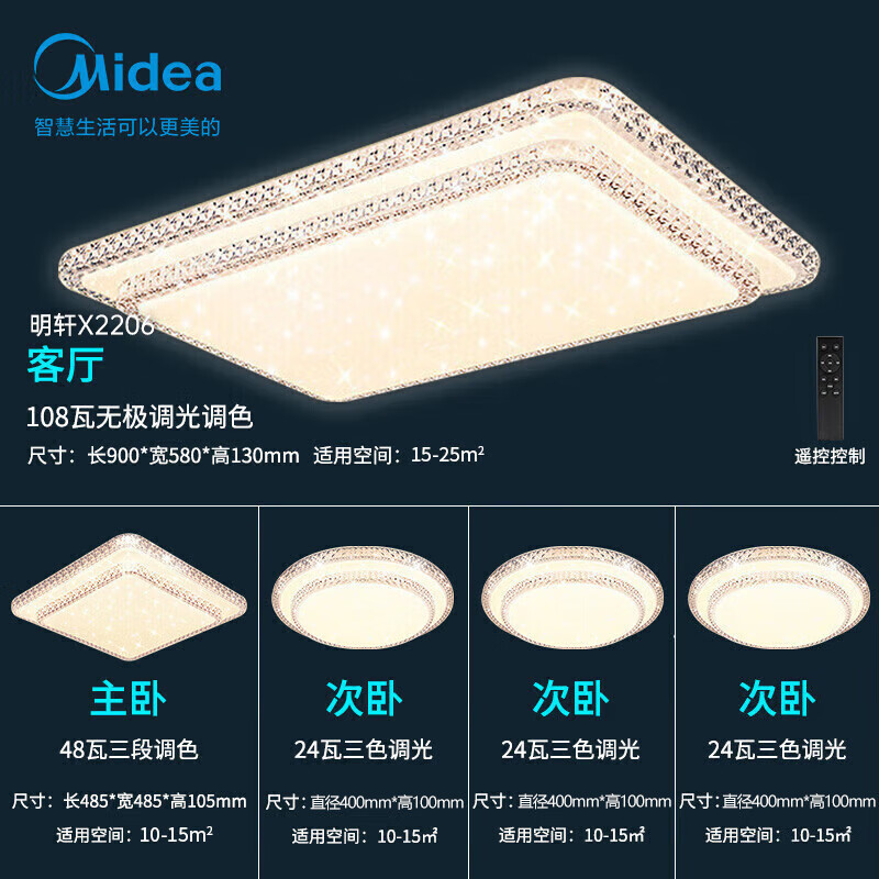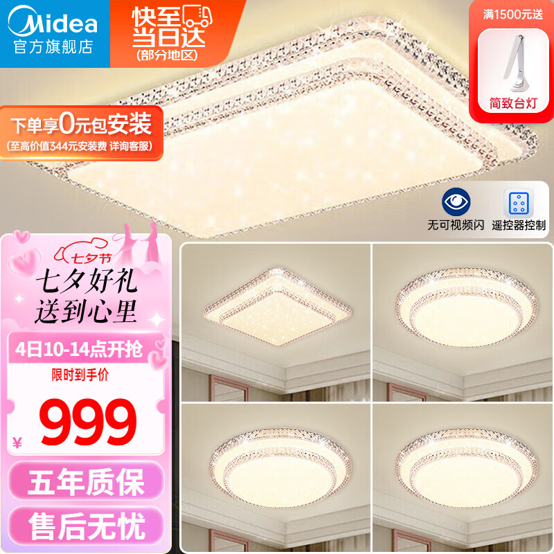 美的(Midea)LED吸顶灯客厅大灯照明现代轻奢仿水晶餐厅卧室灯具灯饰套餐价格:1249.00元!