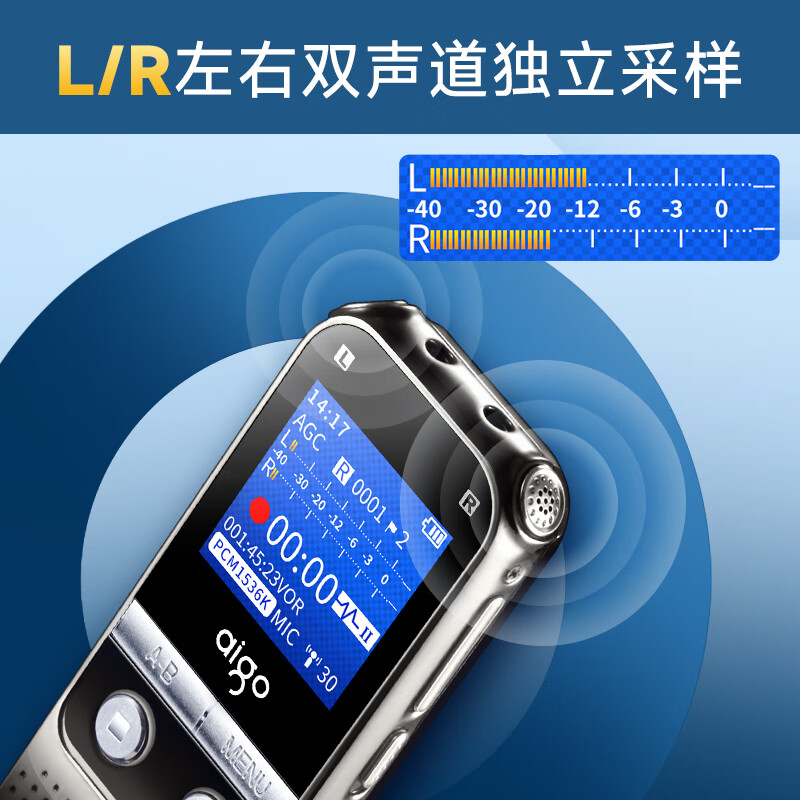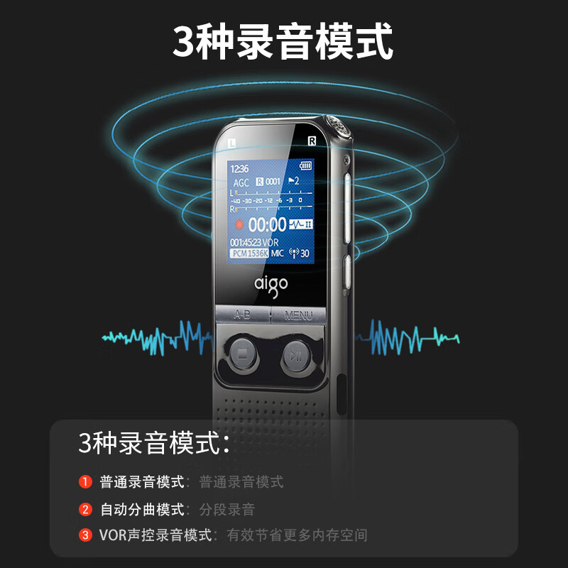爱国者aigo录音笔R5522 16G 一键录音 专业高清远距降噪 声控 学习会议采访录音 PCM高品质 锖色价格:359.00元!