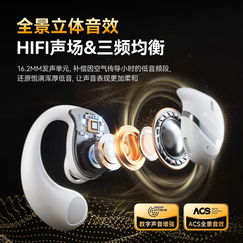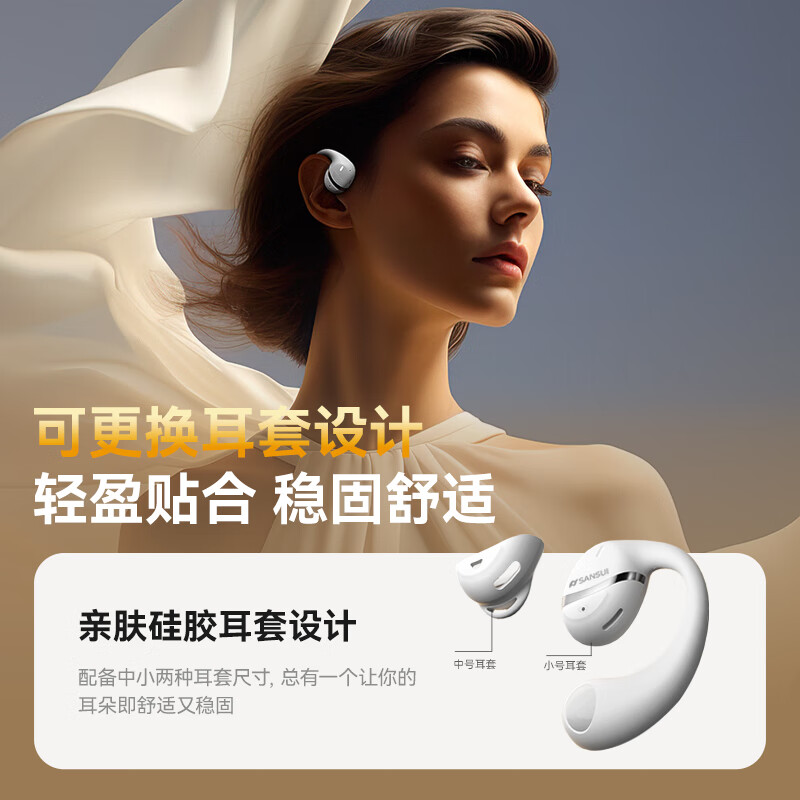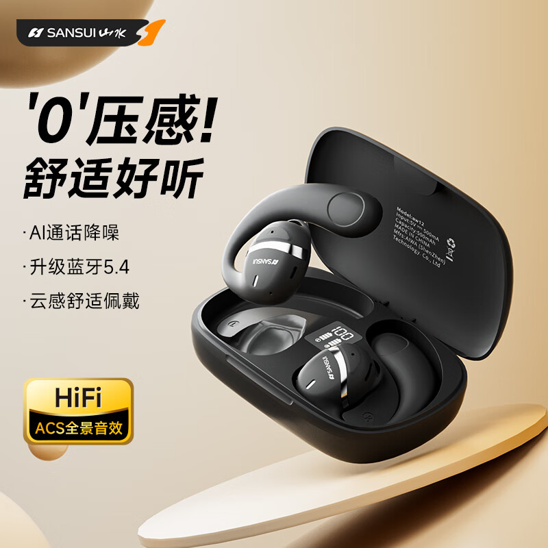 山水(SANSUI)TW95 蓝牙耳机 骨传导概念耳挂挂耳式无线开放不入耳 运动跑步通话降噪 适用于苹果华为小米 黑价格:79.00元!