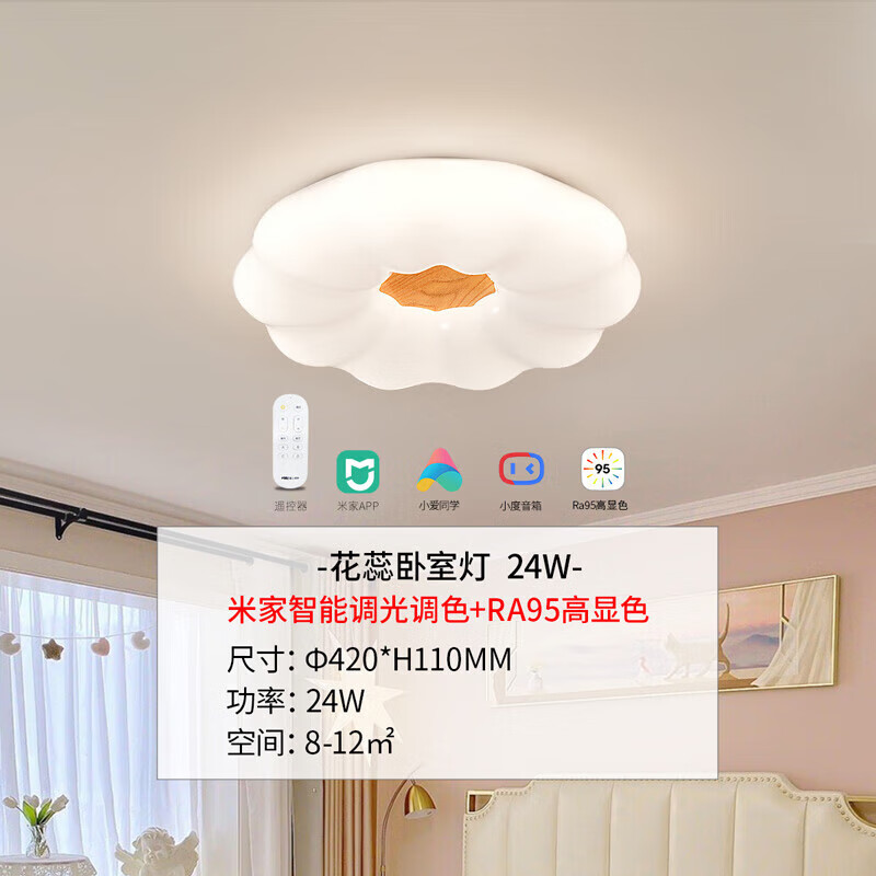 雷士(NVC)led吸顶灯卧室儿童房灯具原木奶油风智能舒适光WHXD24F/F-06价格:385.00元!