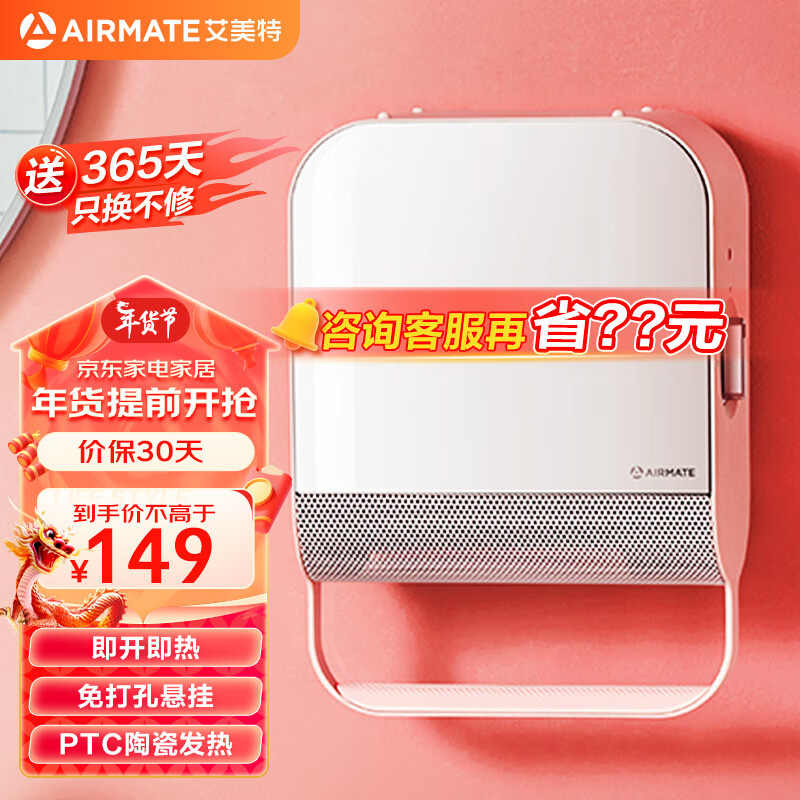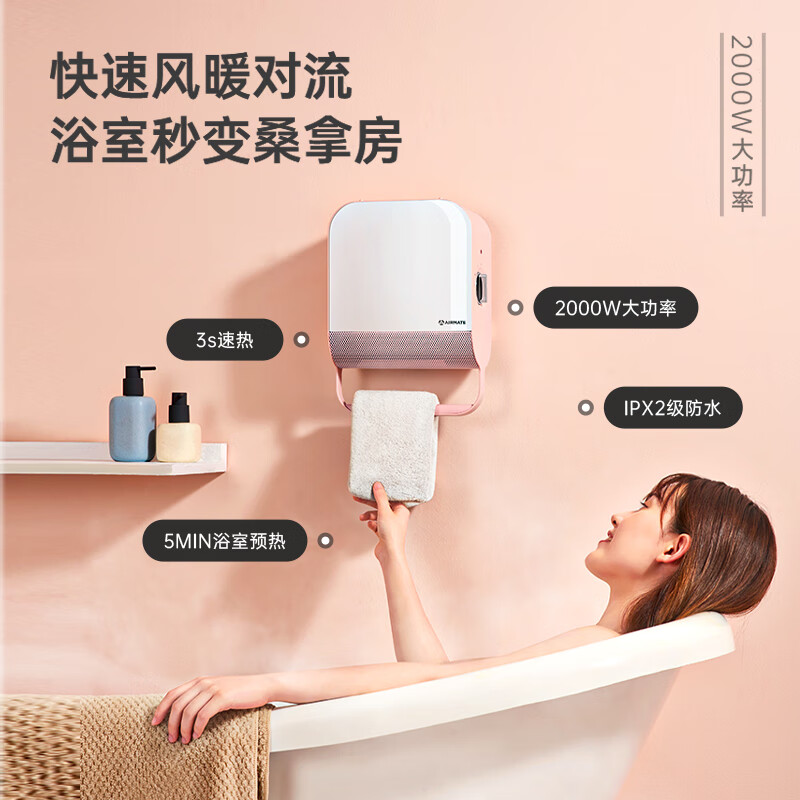 艾美特(AIRMATE)暖风机/取暖器/电暖器家用/电暖气片/电热风扇 浴室防水桌面壁挂两用美妆镜面暖风机 WP20-X11P-3价格:159.00元!