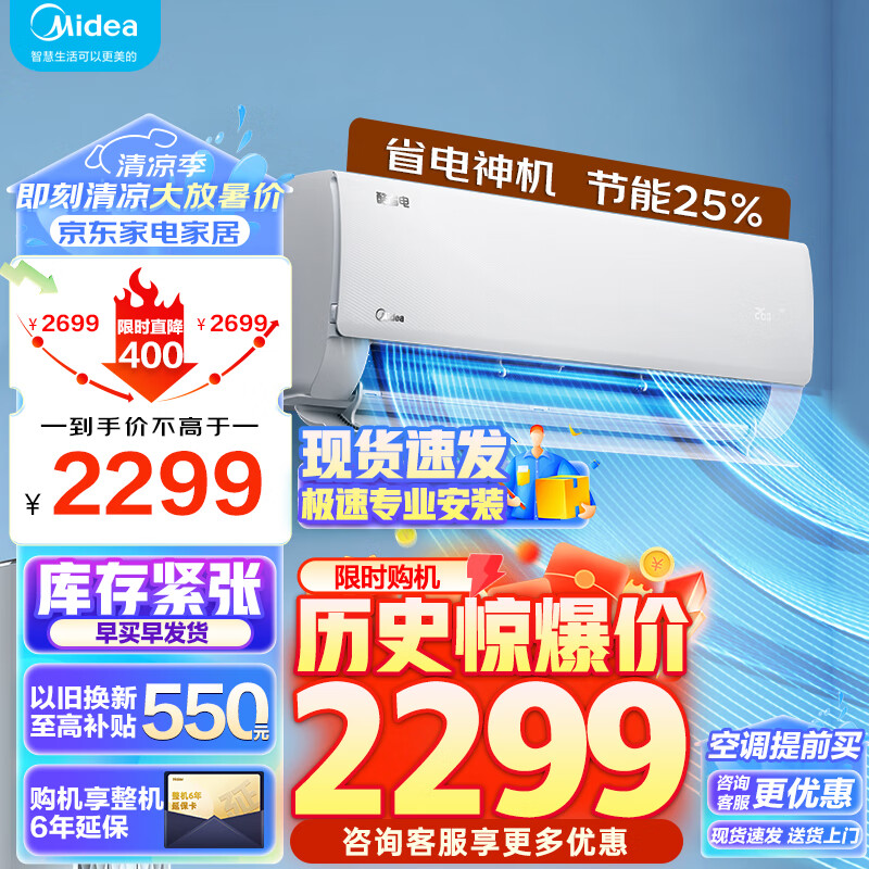 美的(Midea)空调 1.5匹 酷省电 新一级能效 变频冷暖 自清洁 壁挂式空调挂机 智能家电 KFR-35GW/N8KS1-1价格:2299.00元!