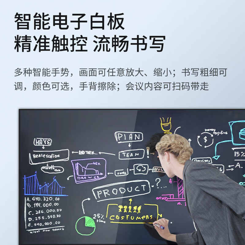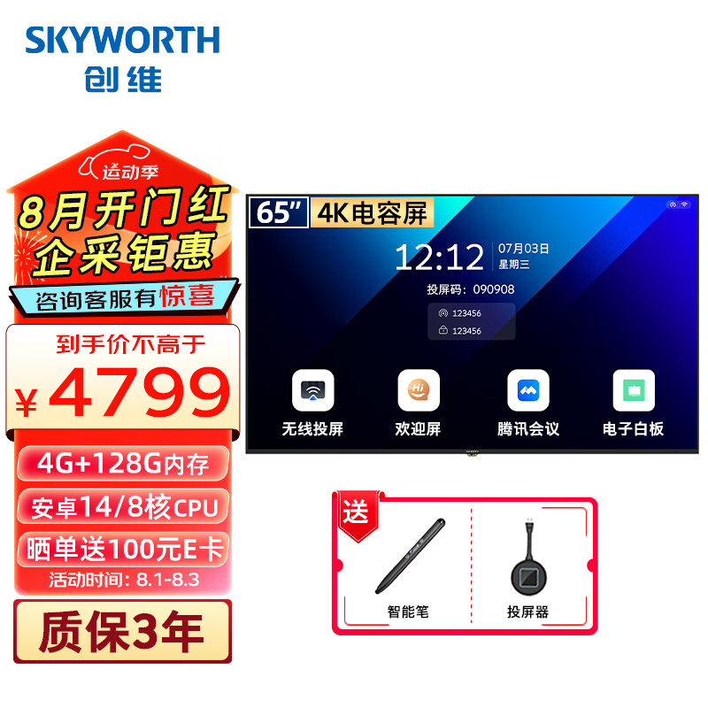 创维(Skyworth)65英寸会议平板一体机电子白板无线传屏投影培训教育智能触摸屏电视商用显示65DSH5投屏器套装价格:4799.00元!