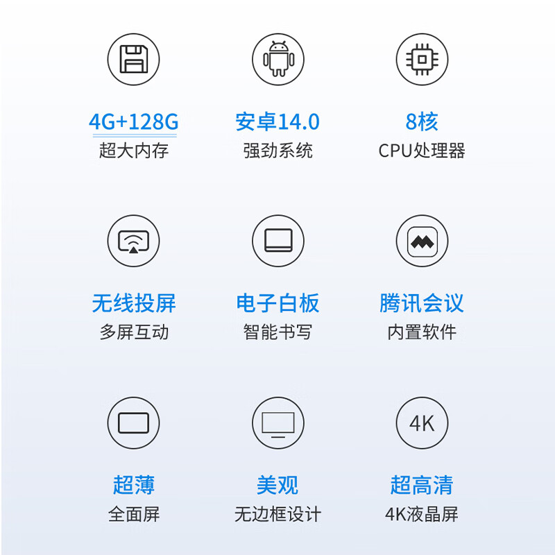 电视类型:移动自由屏,开机无广告电视,会议平板一体机,会议电视