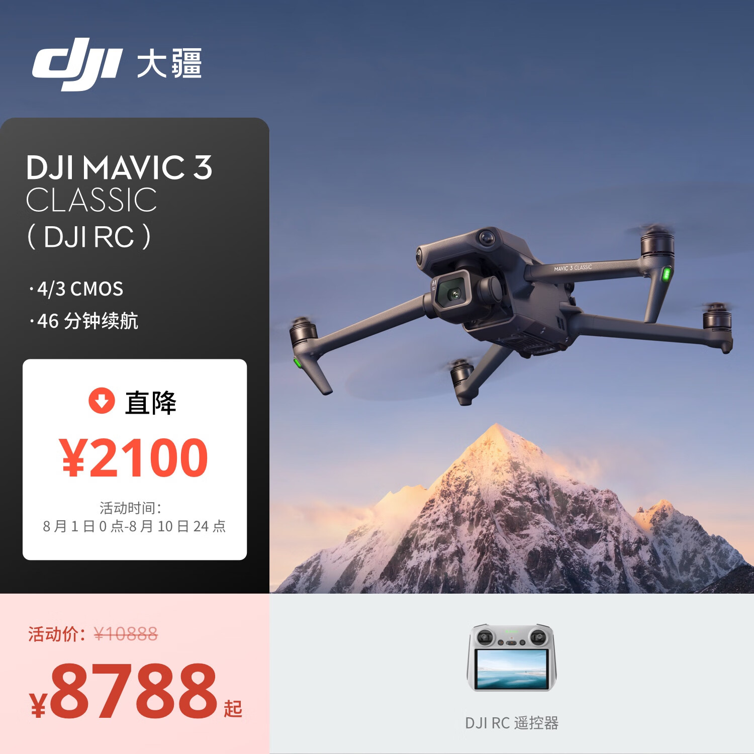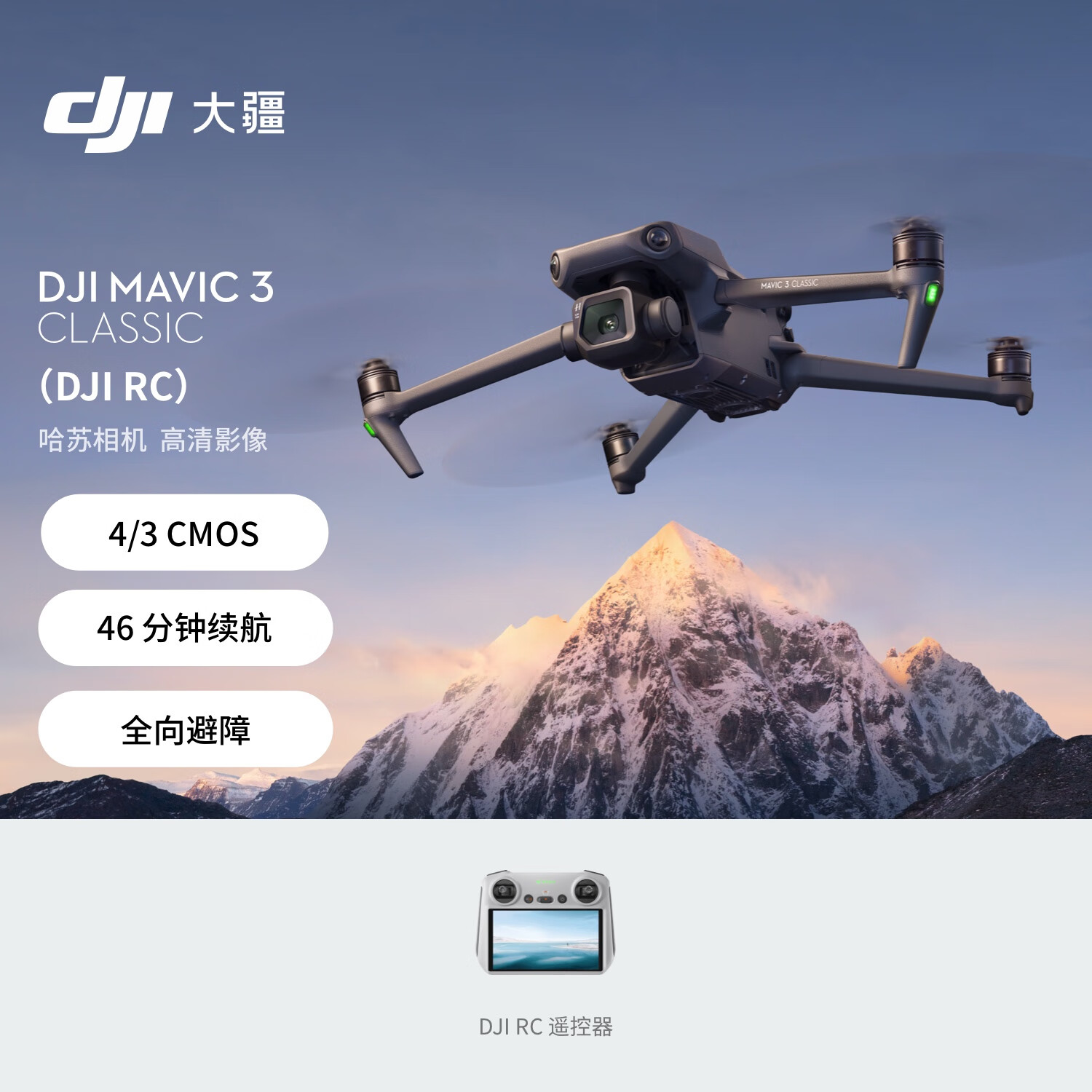 大疆 DJI Mavic 3 Classic (DJI RC) 御3经典版航拍无人机 哈苏相机 高清影像拍摄 智能返航 遥控飞机价格:8788.00元!