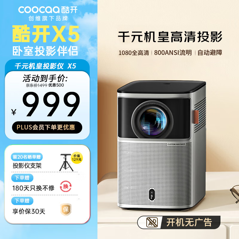酷开X5 创维投影仪家用 客厅卧室智能投影机 高清家庭影院 迷你便携(4k解码1080P 自动校正 )价格:1099.00元!