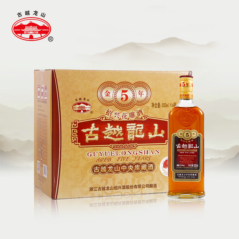 古越龙山 中央库藏金五年 半干型 绍兴黄酒 500ml*6瓶 整箱装 新昌版价格:118.00元!