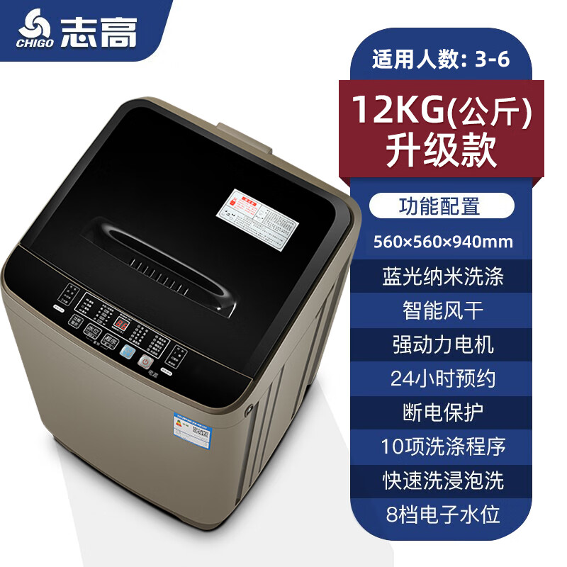 志高(CHIGO)12KG大容量全自动波轮洗衣机家用宿舍租房免清洗智能洗脱一体全自动洗衣机 咖啡金价格:538.00元!