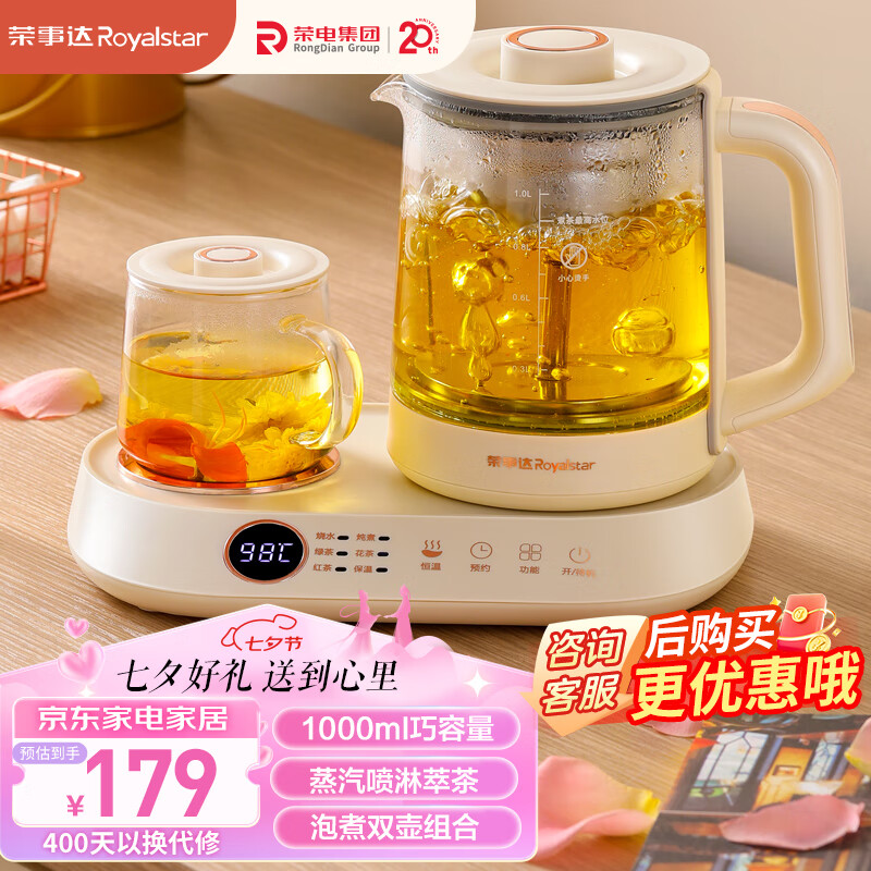 荣事达(Royalstar)养生壶养生杯套装迷你烧水壶煮茶壶家用办公1L 多功能保温杯垫花茶壶开水壶电热水壶 YSH10-T19价格:179.00元!